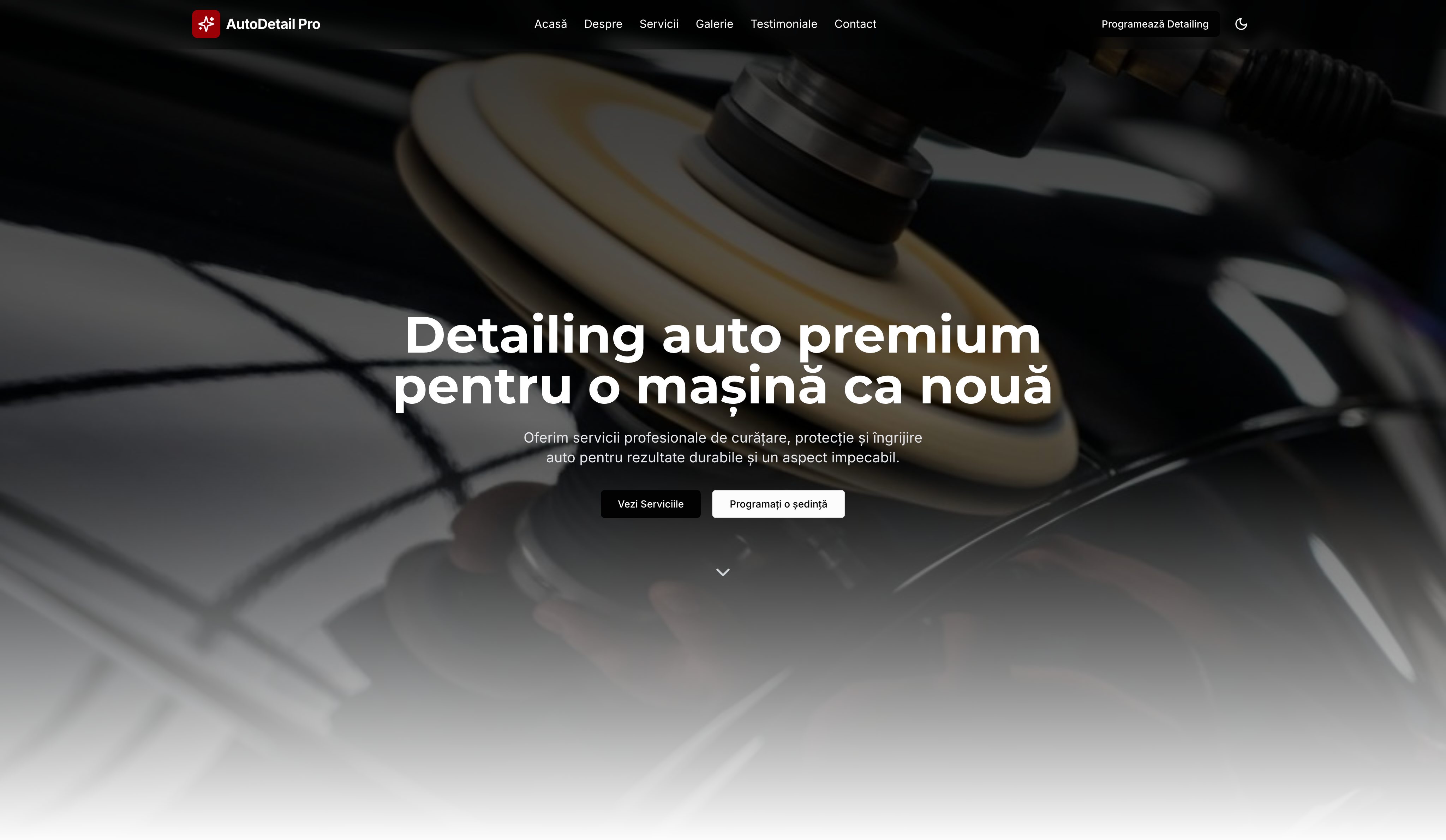 Șablon premium pentru servicii de detailing auto profesional. Design elegant și sofisticat cu imagini impactante, perfect pentru a evidenția serviciile de curățare și îngrijire auto de calitate superioară.